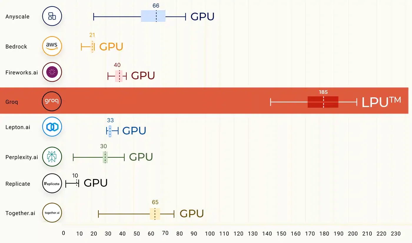 The inference speeds using Groq are significantly faster than any other provider currently available: